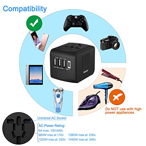 Universal USB Travel Power Adapter-EPICKA All In One Wall Charger AC Power...