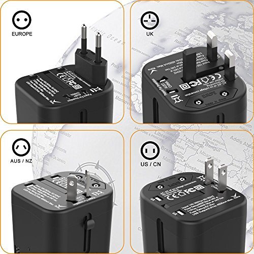 - WORLDWIDE CHARGING - This Travel Adapter Cover more than 150 Countries with US/EU/UK/AU plugs. It works in Canada, Russia, Asia, Central America, South America and the Middle East to name a few.