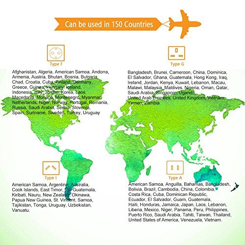 Most of these travel adapters accept plugs from the most travelled countries and regions including UK, Europe, Asia, Russia, Australia, Central America, South America and the Middle East and 150+ Countries, making it easy for you to travel around world.