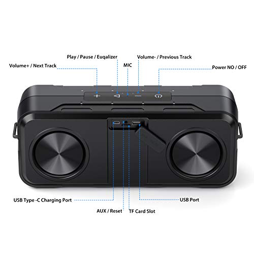 - ✅ Advanced Bluetooth 5.0 Technology and universal connectivity will make connecting your 40W waterproof Bluetooth speaker to your smartphone, iPhone, or iPad a breeze. Use the TF card slot for Micro SD cards or the 3.5mm Aux plug for other devices.