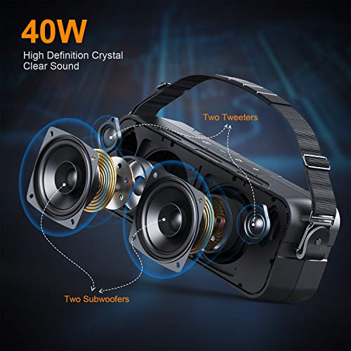 Bluetooth Speaker, WIMUUE 40W Loud Wireless Portable Speaker with Built-In 8000mAh Power...