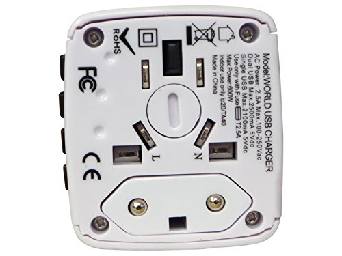 ShaniTech Worldwide Travel Adaptor with Dual x2 USB Charging Ports Fused White...