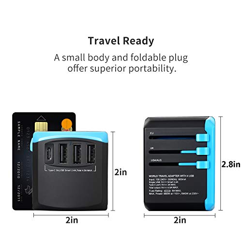 - QUAD USB CHARGING PORTS - This Universal Adapter has 3 USB Ports and 1 Type-C Port, the input voltage of the USB is 100-240VAC, which means you can use it around the world to charge multiple USB devices at the same time, such as your cell phone, Power Bank, MP3/4/5 and Camera etc.