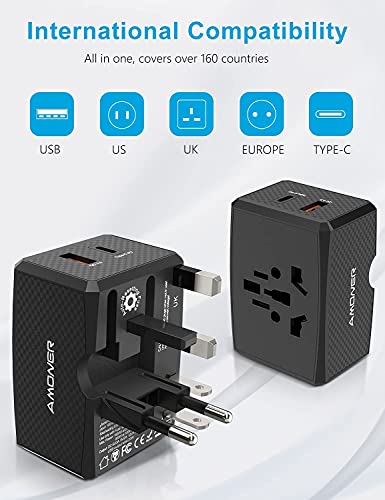 Amoner Power Adapter International 3-Port USB and 1 Type C Port for...
