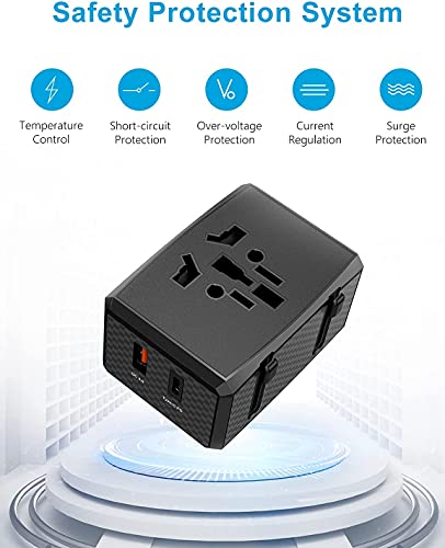 - SAFETY PROTECTION - The travel adapter converter has CE, ROHS, FCC certificates and uses imported PC 94 VO fire-resistant plastic material, which will not be burnt when encountering fire, is environmentally friendly, and safer to use. Three protection designs: anti-electric shock, anti-single plug, and anti-1 mm pin. The socket jack has a childproof design. Single jack can not be inserted, safer to use.