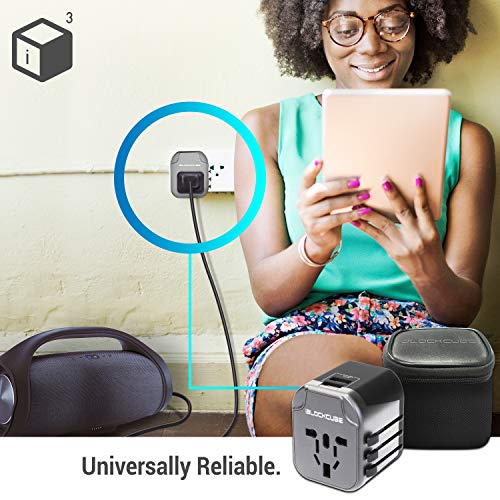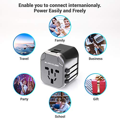 iBlockCube® Worldwide Travel Plug Adapter with 2 USB 2.4A Charging Ports, International...