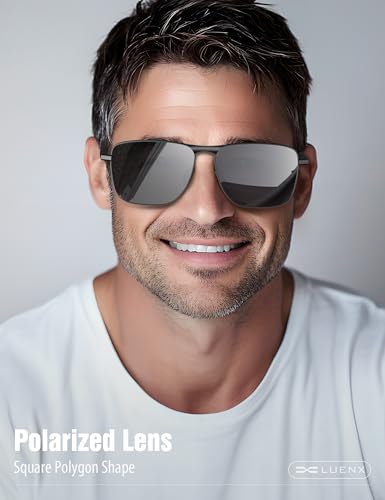 LUENX Rectangular Aviator Polarized Sunglasses Square Retro 100% UV Protection Black Frame...