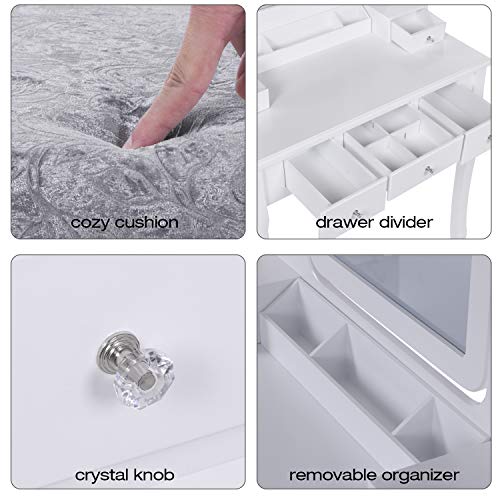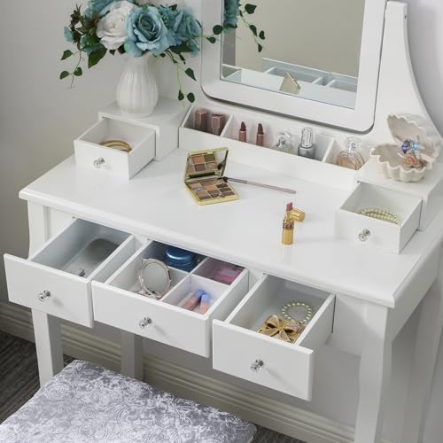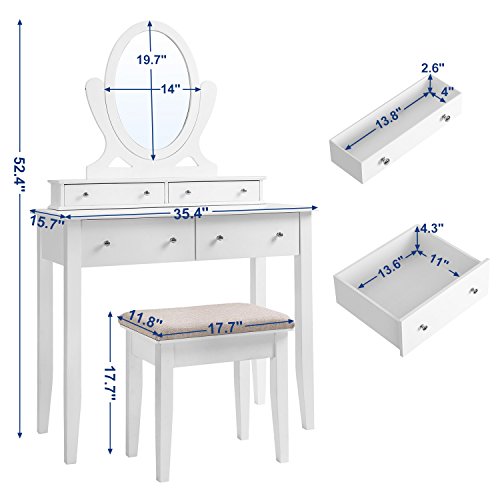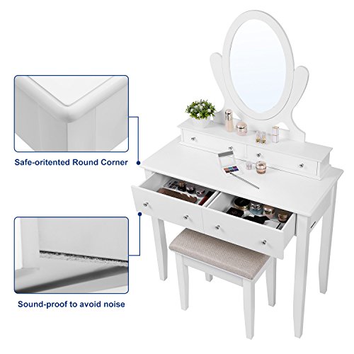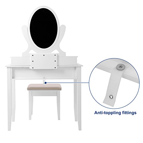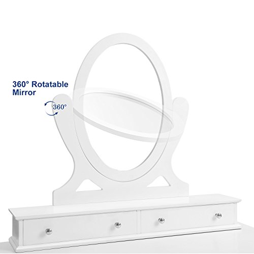 Mecor VD-52948HW Makeup Dressing Table with Oval Mirror,Bedroom Vanity Set w/Cushioned Stool...