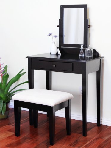 These vanity tables and stools sets will add a bit of class and elegance to your home decor. They will fit in your bedroom, bathroom, closet or hallway. The cushioned seats on the stools offer you a comfy place to sit and do your hair and makeup. These vanity sets will make perfect gifts for your special girl on Valentine’s Day, Mother’s Day, Christmas or birthday.