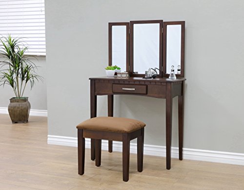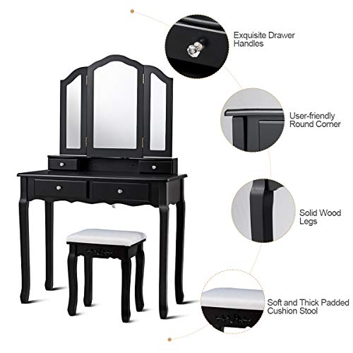 Giantex Tri Folding Mirror Bathroom Vanity Makeup Table Stool Set Home Furni...