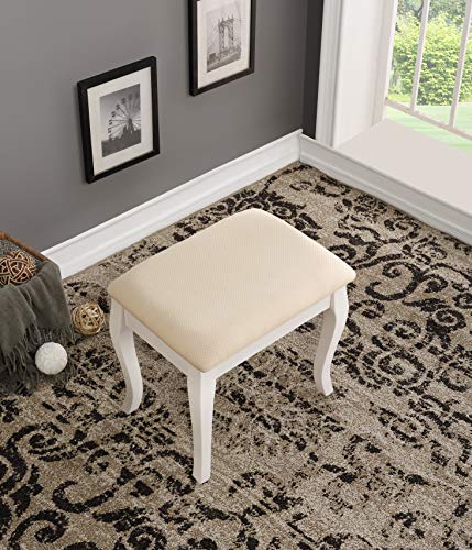 Roundhill Furniture Ashley Wood Make-Up Vanity Table and Stool Set, White